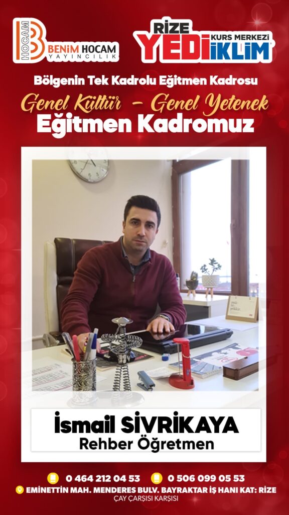 Siz değerli öğrencilerimize, velilerimize ve öğretmenlerimize, Rize Yediiklim Kişisel Gelişim Kursu ailesine olan güveniniz için teşekkür ediyorum. Hep birlikte daha büyük başarılara imza atacağımızdan eminim.