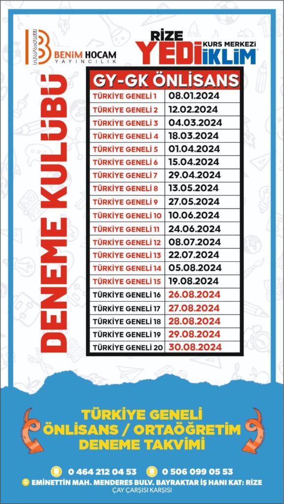 KPSS B – GY-GK (LİSANS) sınavına hazırlanmak için doğru adrestesiniz! Rize Yediiklim Kişisel Gelişim Kursu’nda, başarıya giden yolda size rehberlik etmek için sabırsızlanıyoruz.